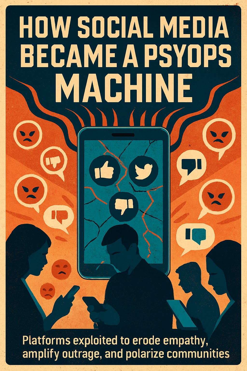This phase is mostly unintentional psyops: the system is optimizing for ad revenue, not civic health. But the infrastructure for emotional manipulation at scale is now in place.